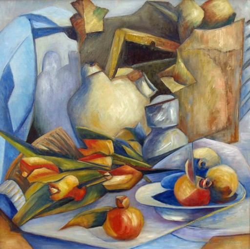En mis obras se ve reflejada la infuencia de la cultura española y holandesa. Invierto colores f'rios y cálidos, fruta, tulipanes y objectos de ambas culturas. Fusiono los elementos de forma que las encontramos tanto en obra realista como en la cubista. Las cuales son un reflejo de mi vida. Una de mis fuentes de inspiración son los instrumentos musicales. Trato de incorporar el ritmo en mis cuadros en forma de línea, espacio, movimiento y color. La cual he realizado después de un estudio intenso del montaje de la composición.